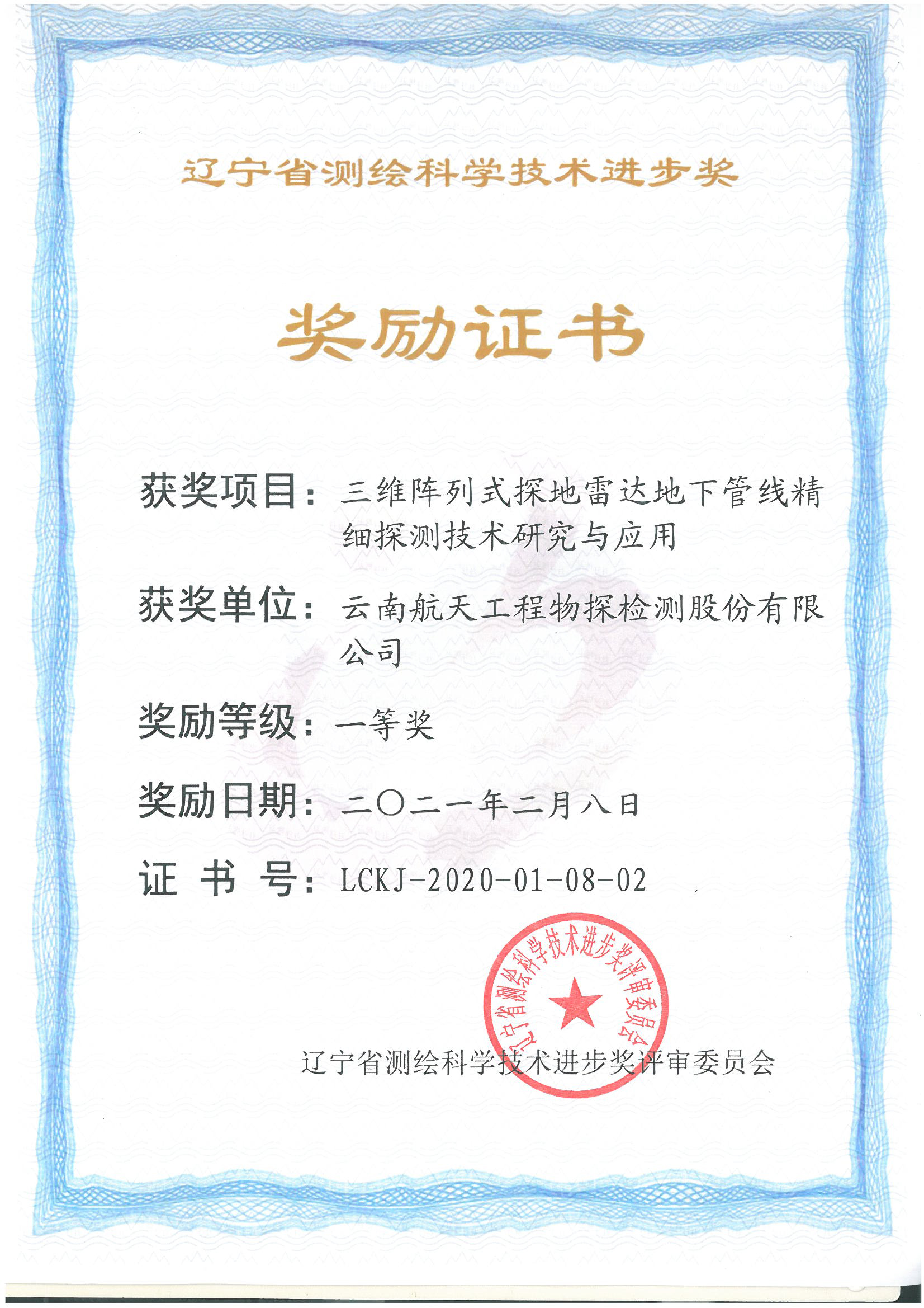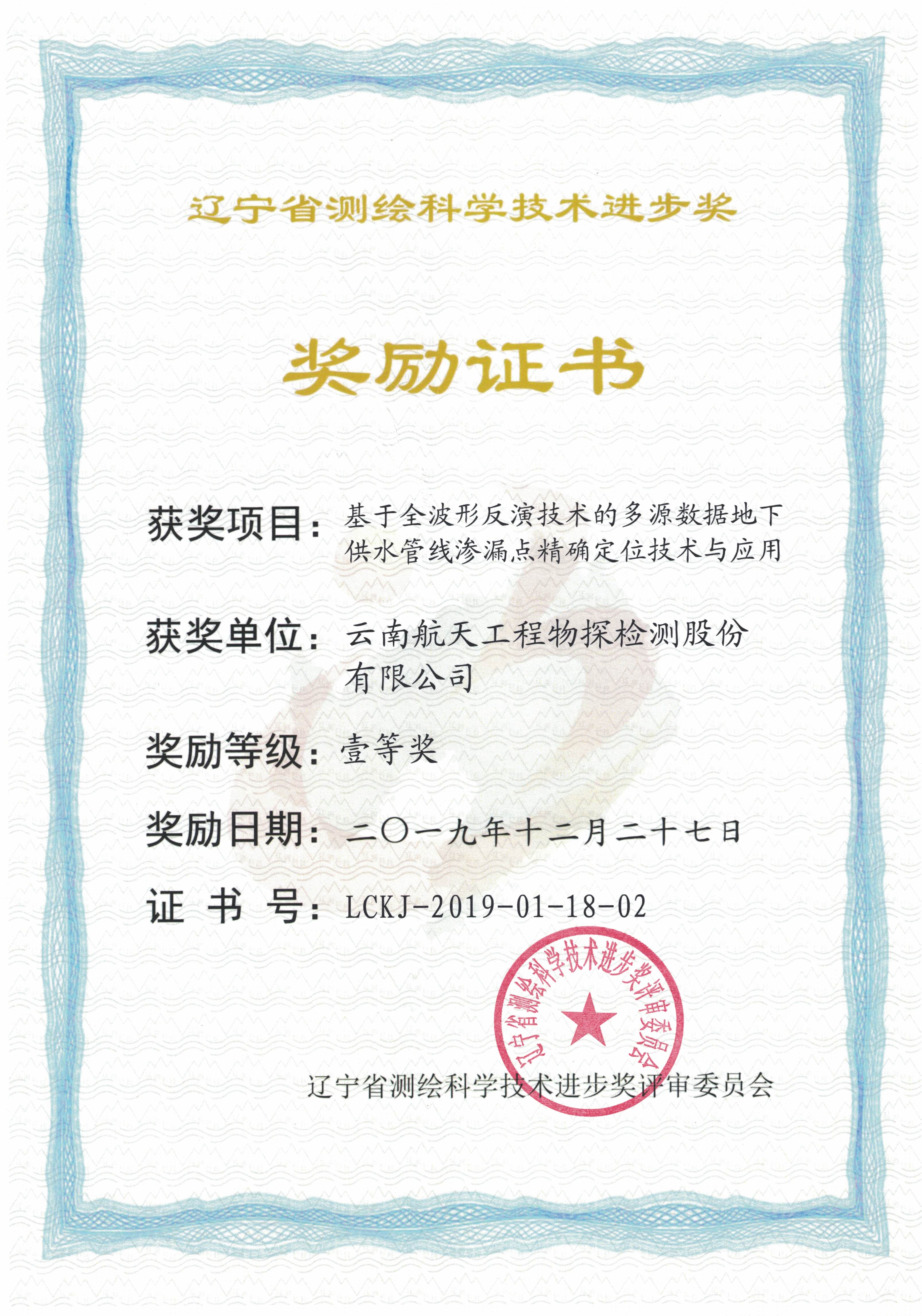 遼寧省測繪科技進步一等獎