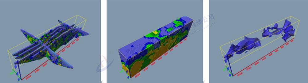 地質(zhì)雷達三維探測結(jié)果——通過CT切片的形式精細反映隧道周邊水體三維分布情況